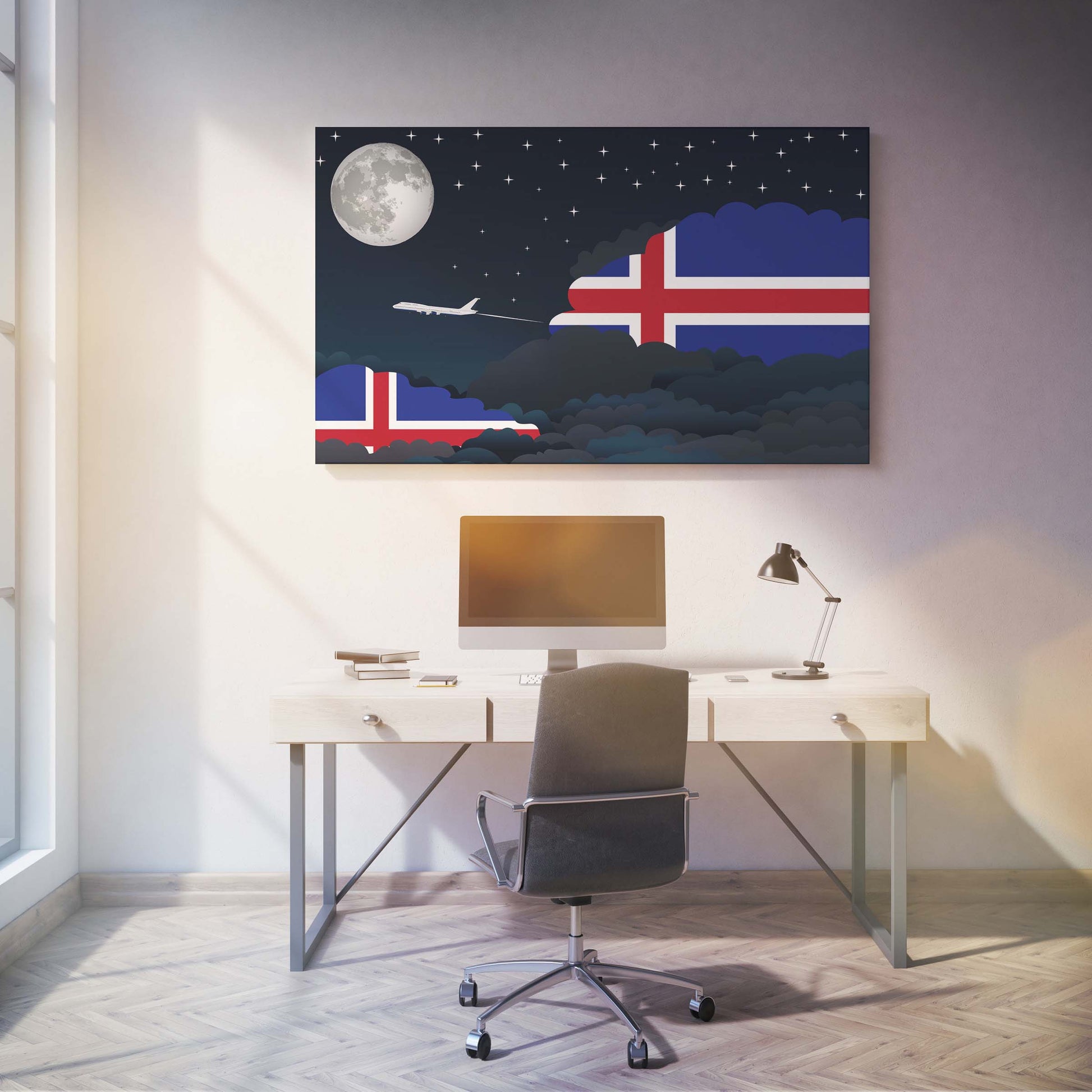 Iceland Night Clouds Canvas Print Framed
