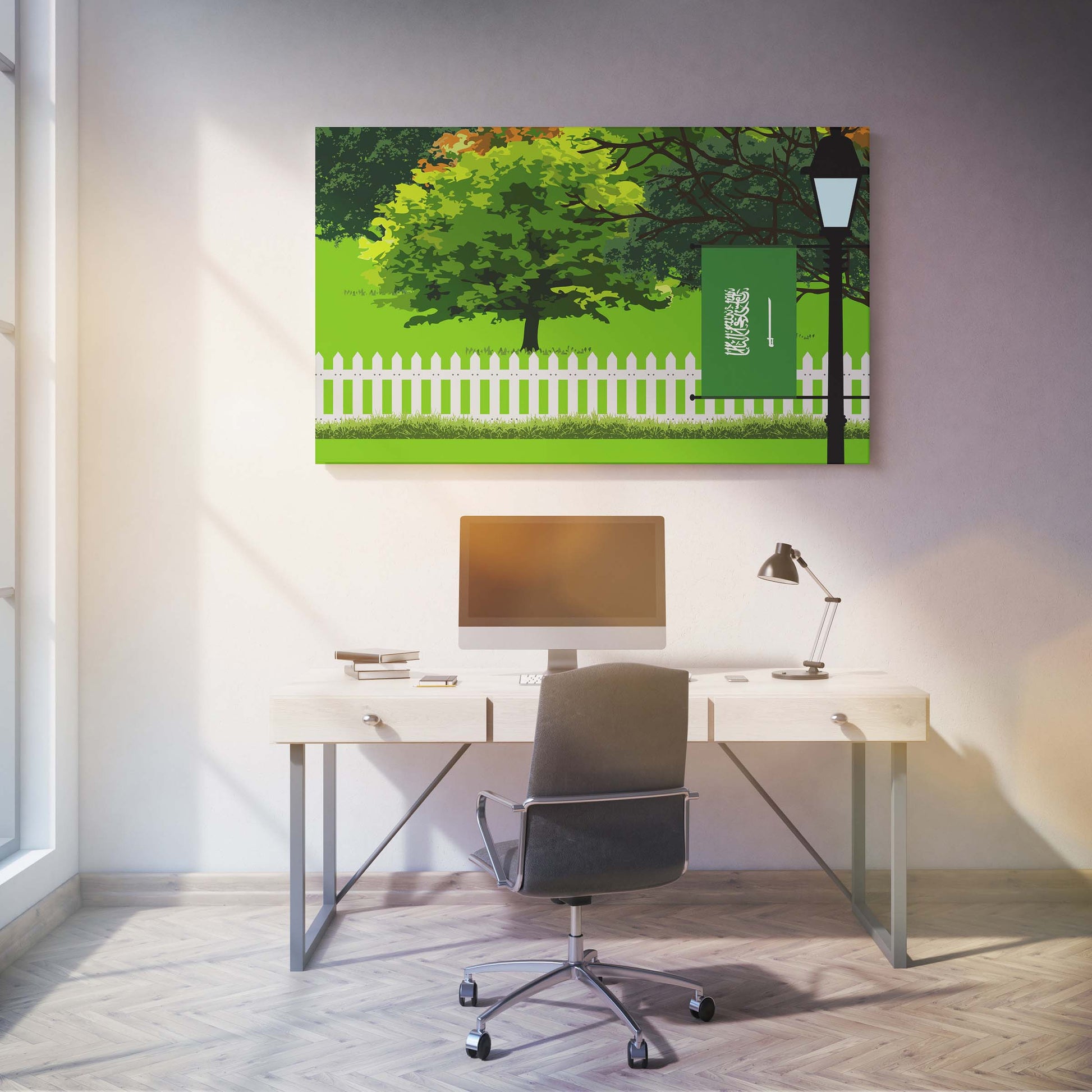Saudi Arabia Trees Street Lamp Canvas Print Framed